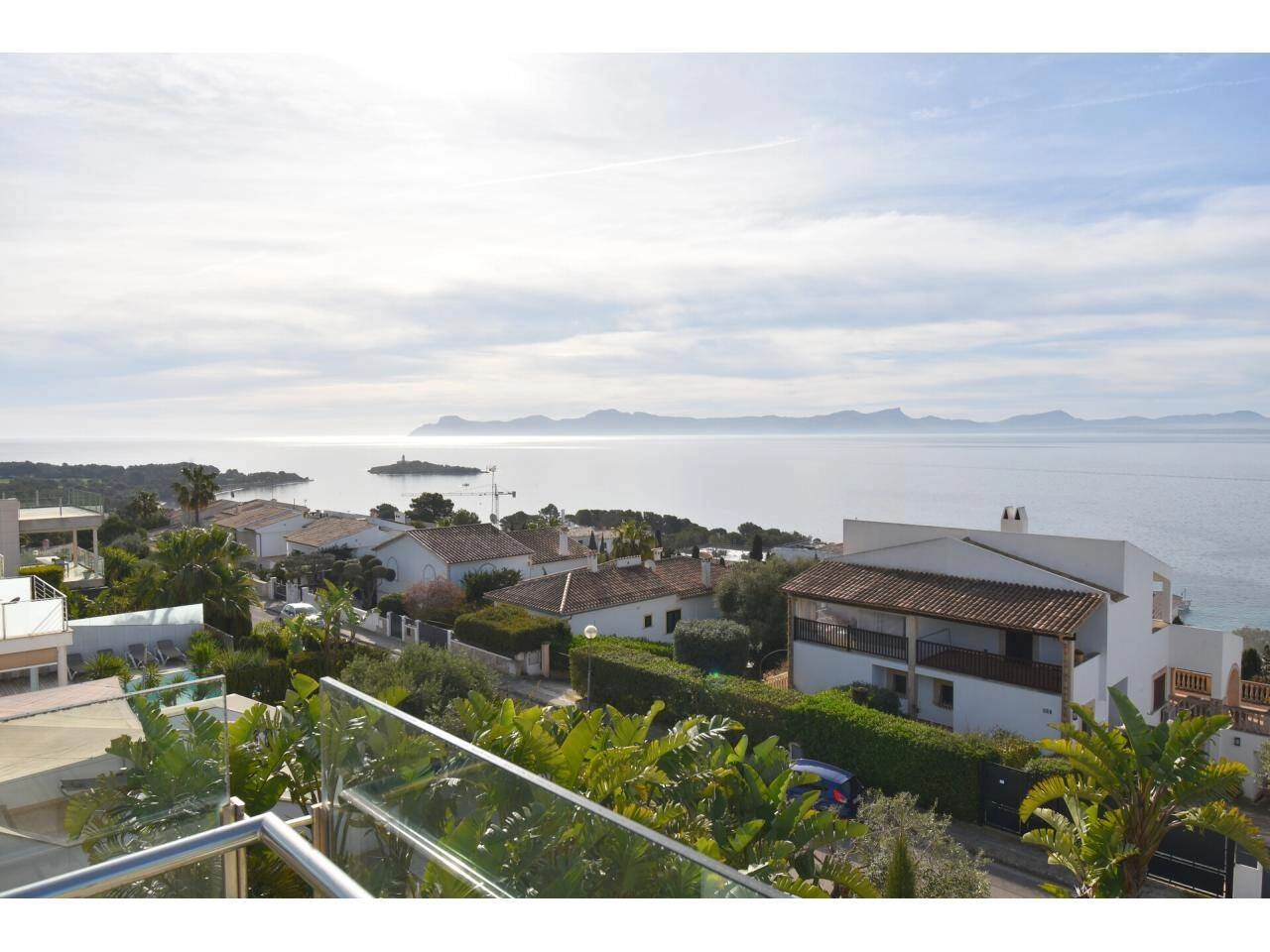 Dieses Anwesen in Alcanada zeichnet sich durch seine Helligkeit aufgrund der großen Panoramafenster mit beeindruckendem Blick auf die Bucht von Alcudia und den Leuchtturm von Alcanada und den Bergen auf der Rückseite des Hauses aus.