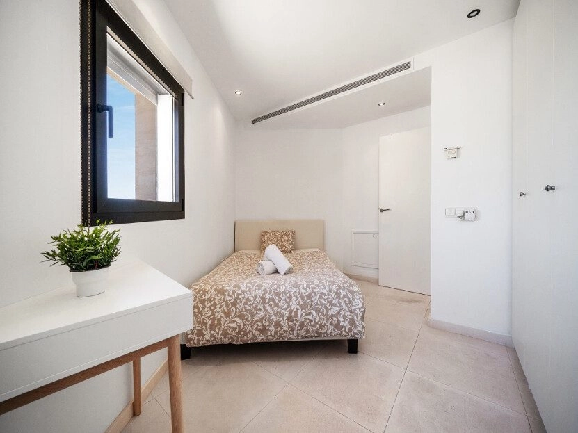 Die Residenz verfügt über ein großzügiges und helles Wohnzimmer dank der großen Fenster, von welchem man einen ausgezeichneten Blick auf das Meer genießen kann und führt direkt auf eine 75 m² große Terrasse. Außerdem gibt es eine geräumige Küche mit hochwertigen Haushaltsgeräten sowie eine Vorratskammer, die auch über einen direkten Zugang zu einem großen Wirtschaftsraum verfügt. Das Objekt umfasst zwei Schlafzimmer, mit der Möglichkeit ein drittes zu integrieren, sowie zwei geräumige Badezimmer. Das Hauptschlafzimmer besticht durch eine Meerblick-Terrasse. Ausgestattet mit allem Komfort und erstklassigen Merkmalen wie: Zentralheizung, Fußbodenheizung, Solarzellen für Warmwasserversorgung, Kirschholzparkett, Holzbalkendecken, Satellitenschüssel, externe Musikanlage und Alarmsystem inklusive Video-Bewegungsmelder. Sie können von hier aus einen fantastischen Panoramablick und spektakuläre Sonnenuntergänge bewundern. Eine einmalige Gelegenheit direkt am Meer und zugleich nah an Palmas Altstadt zu wohnen. Es besteht ebenfalls die Möglichkeit einen Liegeplatz für das Boot sowie einen Parkplatz im nur wenige Meter entfernten Yachtclub zu erwerben. Dies ist eine einzigartige Gelegenheit in dieser exklusiven Wohngegend. Die Nähe zur Altstadt Palmas sowie Supermärkten und Restaurants runden das Angebot ab.