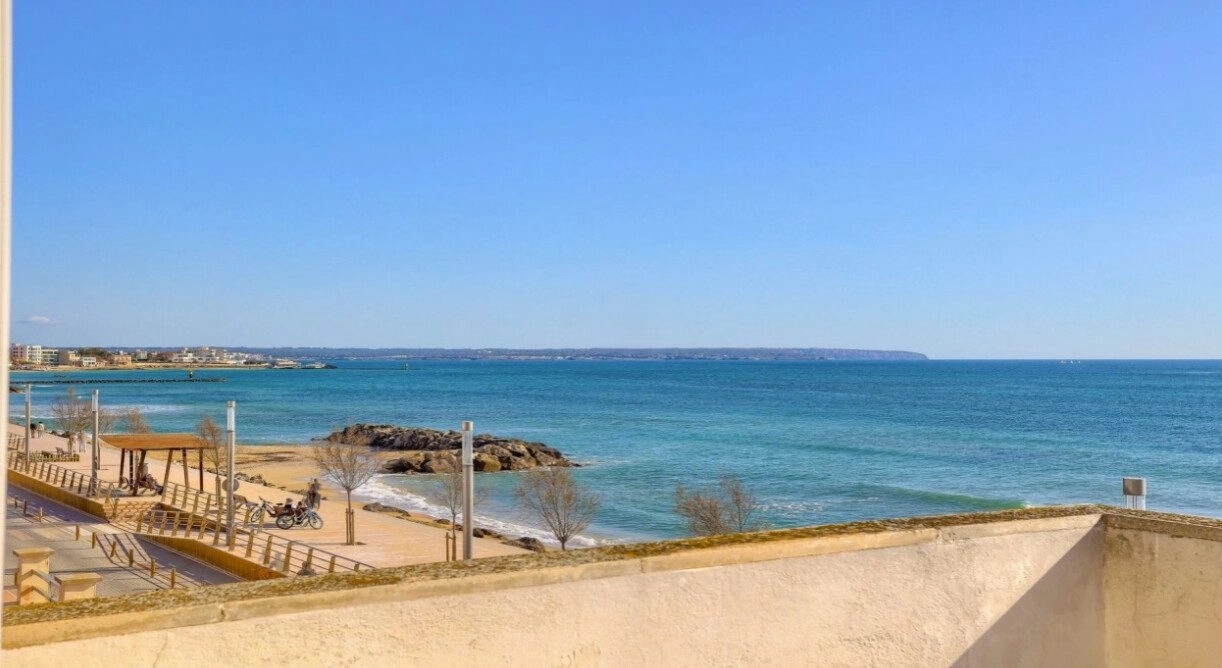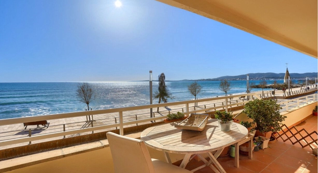 Diese zum Verkauf stehende Wohnung in Molinar auf Mallorca ist eine Wohnung mit Loggia und Dachterrasse in 1. Meereslinie mit unverbaubarem Panoramablick auf das Meer und die Bucht von Palma de Mallorca!