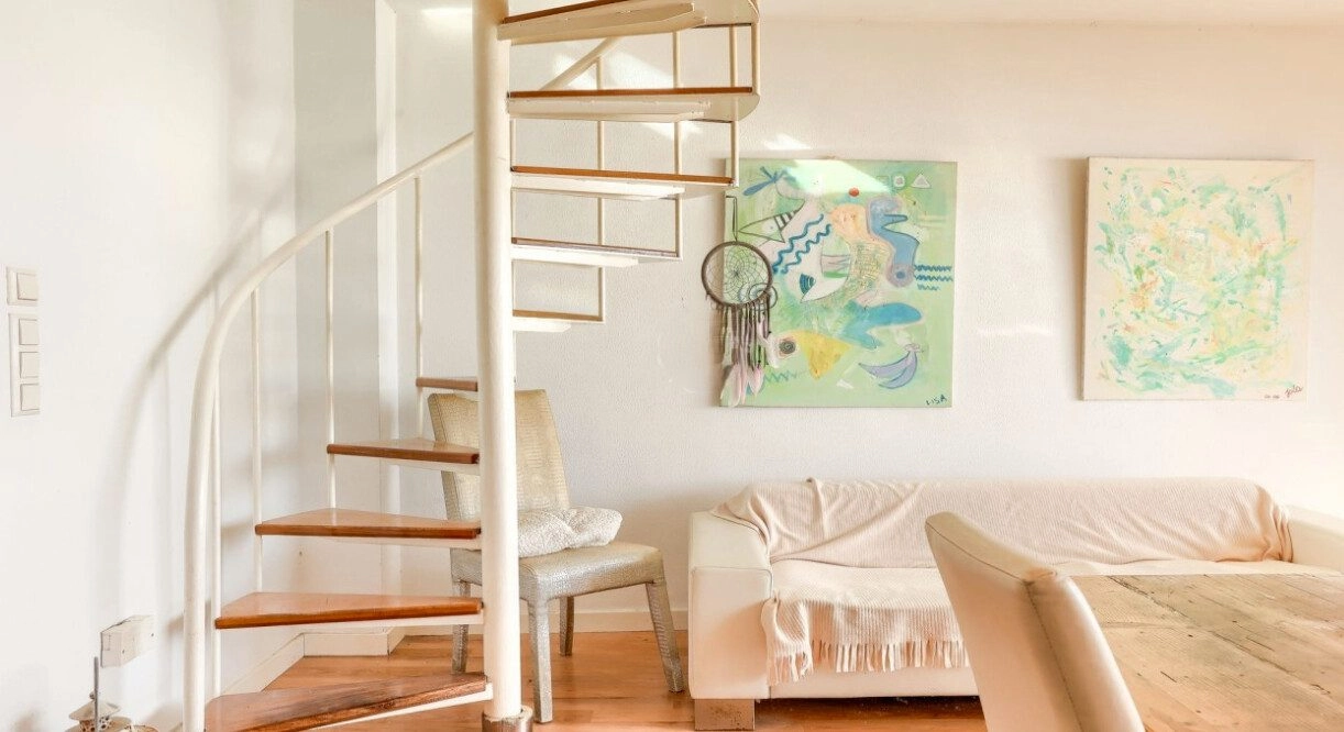 Die Wohnung hat 83 m² Wohnfläche und besteht aus einem lichtdurchfluteten Wohn-/Esszimmer, einer voll ausgestatteten Küche, vier Schlafzimmern und einem Badezimmer. Es gibt eine Loggia und eine Dachterrasse mit Abstellraum, die über eine innenliegende Treppe erreichbar ist.