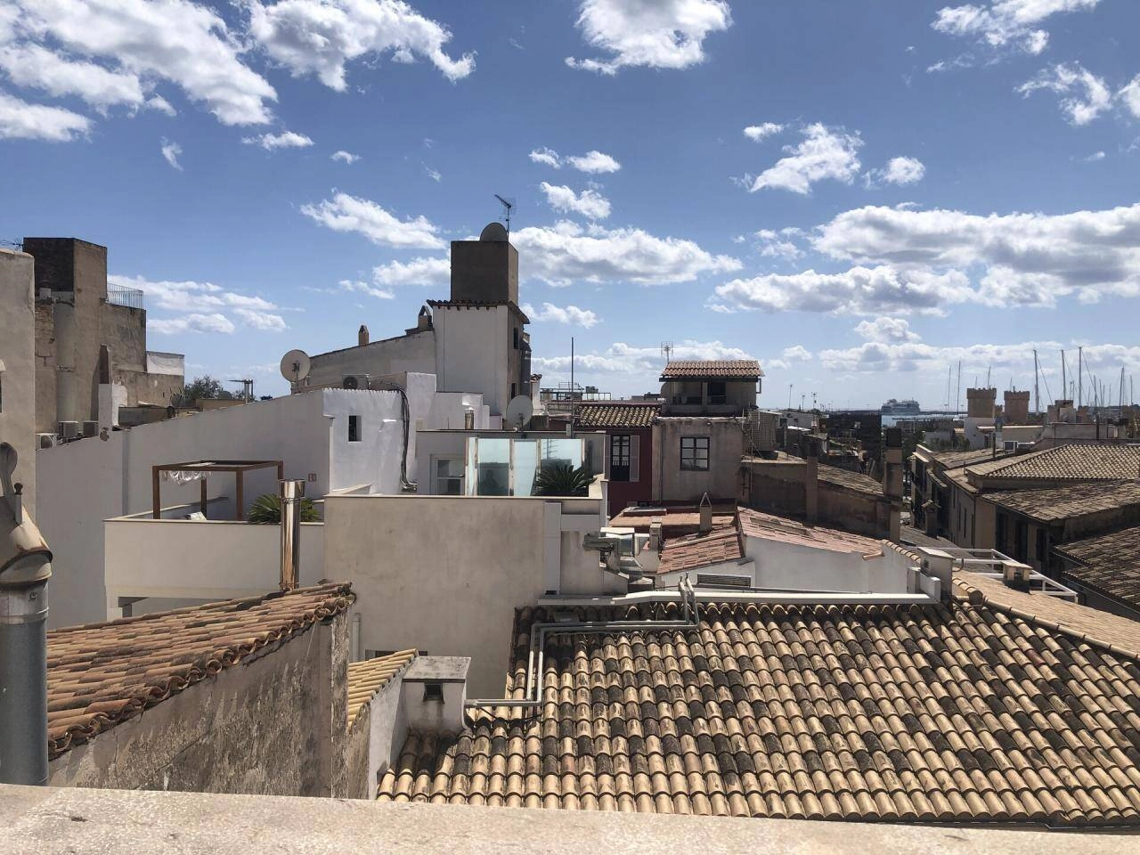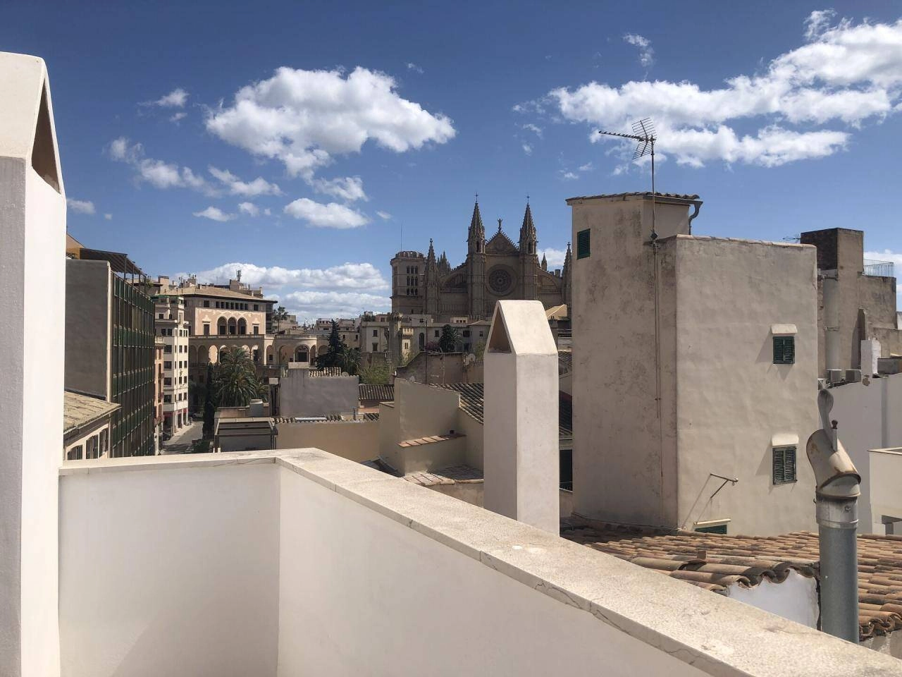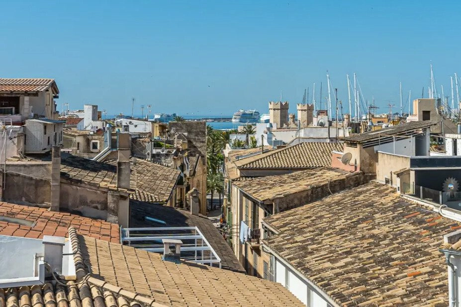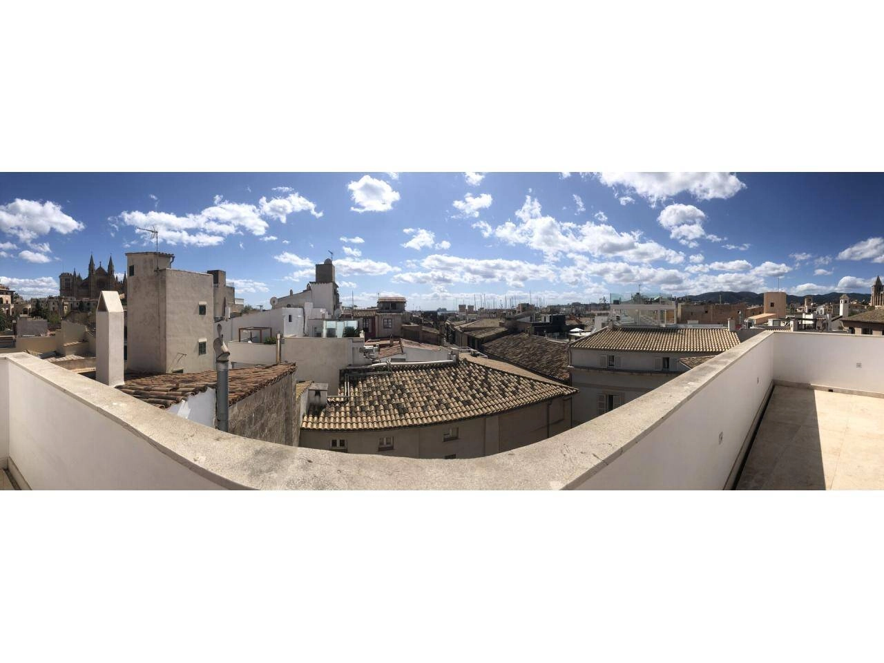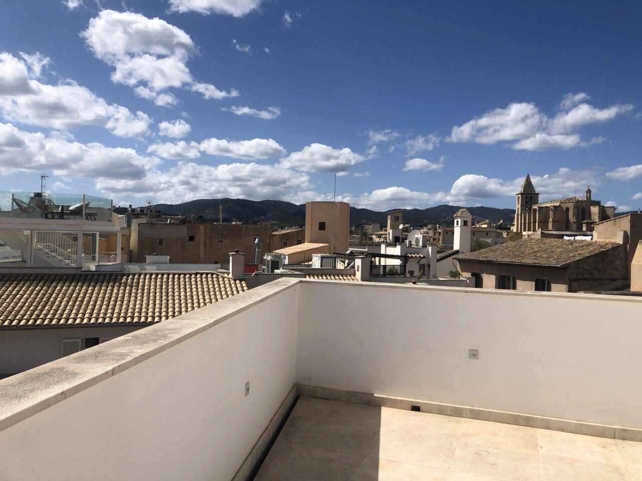 Über eine Treppe geht es auf die private Dachterrasse ( ca. 50 m² ) mit Blick zur Kathedrale und über die Dächer von Palma de Mallorca!